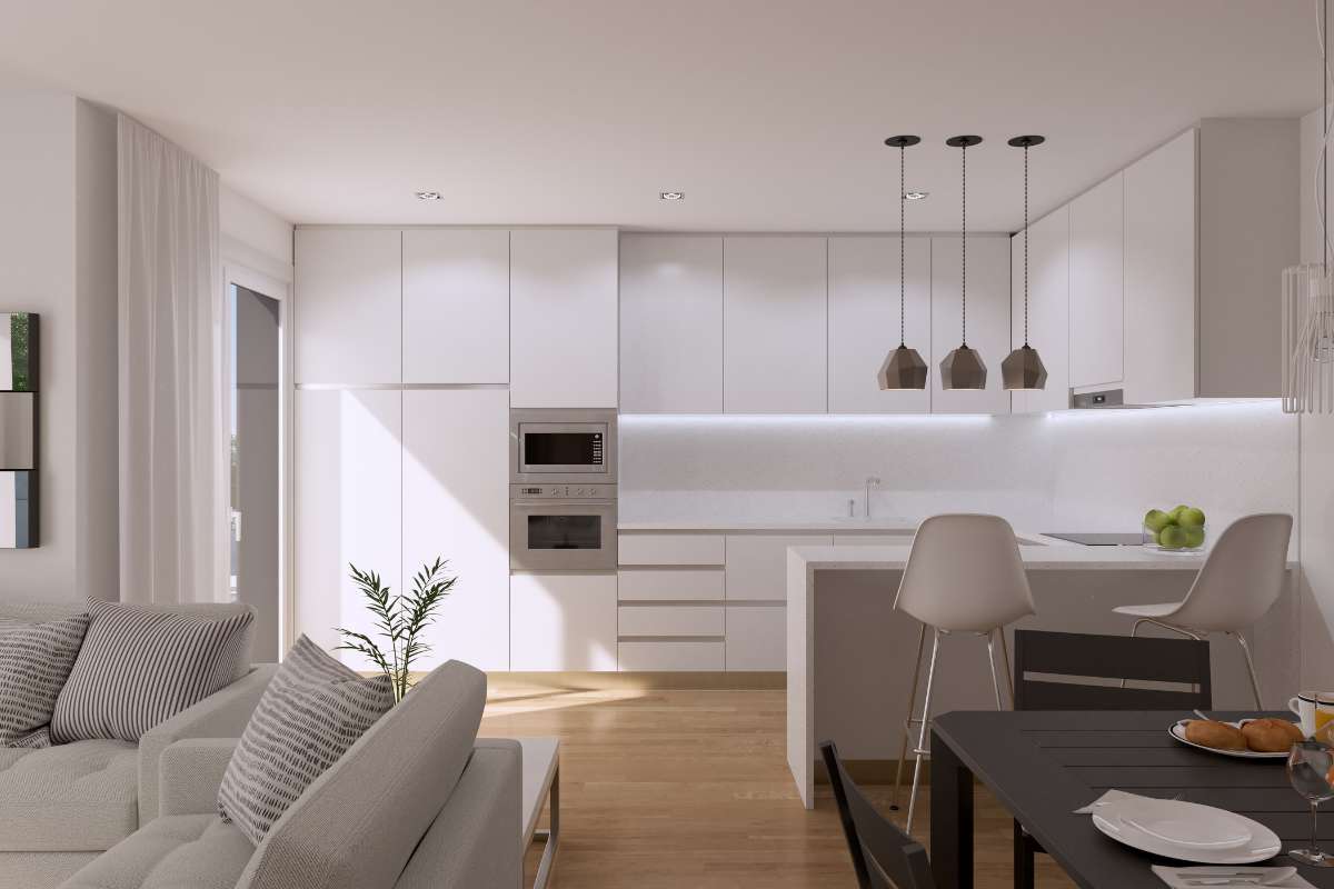Las viviendas cuentan con cocina totalmente equipada, con electrodomésticos de la casa Bosch, armarios empotrados en los dormitorios y muebles de lavabo instalados, dentro del precio estimado para cada vivienda.