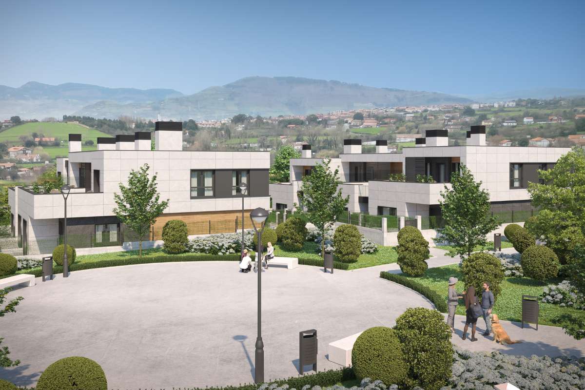 AZKORRI BIDEA 2 es una promoción, en su primera fase de 7 viviendas individuales pareadas, garajes dobles y trasteros, en una zona cercana al metro, en el límite con el municipio de Getxo, y a su vez con la tranquilidad de su entorno.